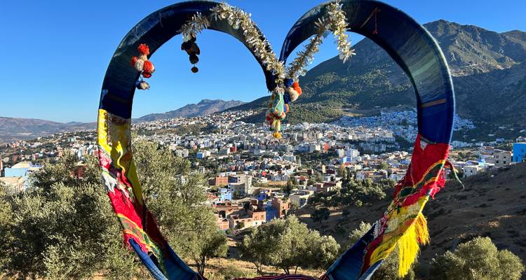 La emblemática medina azul reposa en las montañas del Rif. Calles coloridas y mercados tradicionales ofrecen vistas panorámicas a las montañas. El hotel Dar Hannan ofrece alojamiento auténtico mientras la artesanía local refleja la cultura marroquí.