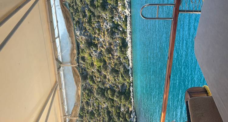 Confortables cabinas te acogen mientras navegas desde Fethiye hasta la ciudad sumergida de Kekova. Auténtica cocina turca y baños en aguas cristalinas en las bahías de Tersane y Boncuklu. La tripulación profesional atiende grupos de 2 a 16 personas.