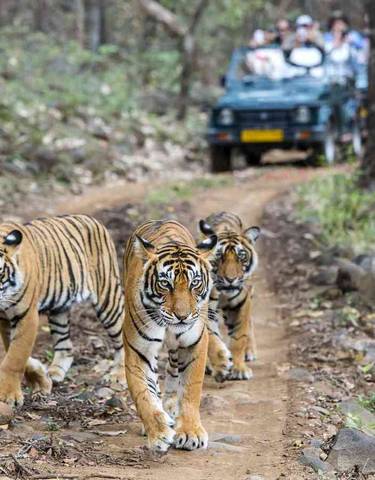 Los safaris de tigres encajan naturalmente en viajes explorando el Triángulo Dorado de India de Delhi, Agra y Jaipur. Muchos visitantes se alojan en el Courtyard Marriott en Agra para ver el Taj Mahal, luego se mudan a The Tigress Resort en Ranthambore antes de terminar en el Hilton en Jaipur. Un viajero de TourRadar comentó: "La combinación de sitios culturales y avistamiento de vida silvestre fue una aventura india perfecta".