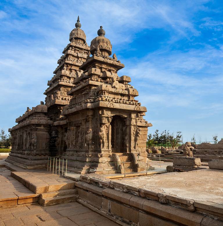 Descubre las joyas culturales de Tamil Nadu sin prisas, con fácil acceso al Templo de la Orilla de Mahabalipuram y al Templo Brihadishwara de Tanjore. Alojamientos confortables cerca de los principales monumentos, con transporte climatizado.