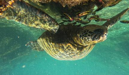 - Bucea con vida marina alrededor de Kicker Rock