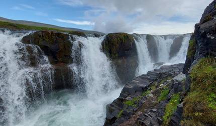 - Ve la poderosa cascada de Goðafoss