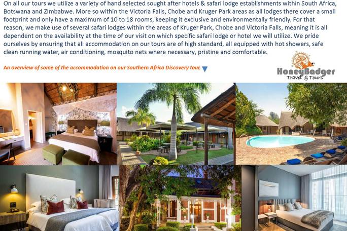 HoneyBadger Travel & ToursOperador•Escrito el marzo 2024El viaje incluye diversas actividades, como safaris en parques nacionales, excursiones a lugares de interés, etc. Consulta el itinerario detallado para conocer los detalles.