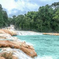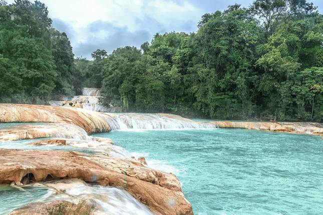 - Nada en las aguas turquesas de Agua Azul