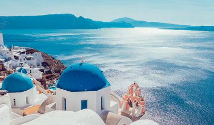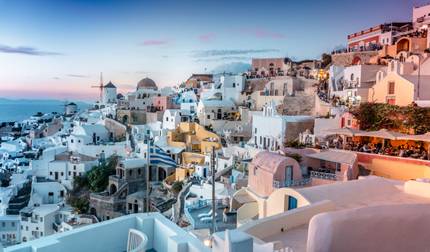 - Relájate en tu primer día en la pintoresca Santorini