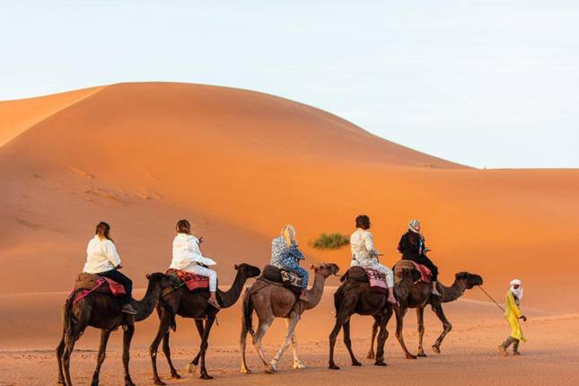 - Pasea en camello por Erg Chebbi al atardecer