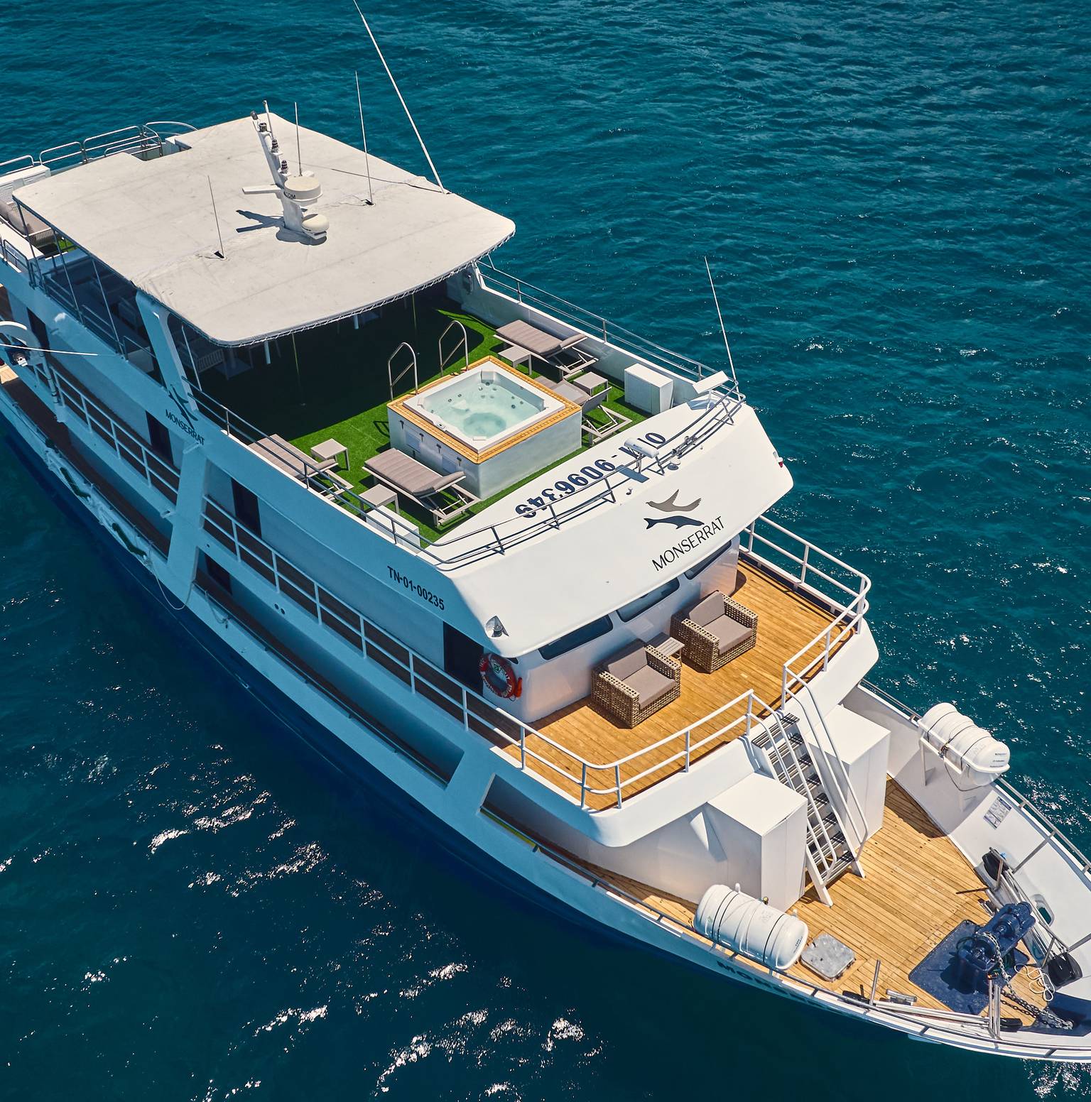 1 reseña de viajeros de TourRadarEl yate Monserrat conecta los ricos hábitats marinos de Punta Vicente Roca con las lagunas de marea de Bahía Darwin. Los paseos en panga y sesiones de snorkel revelan maravillas submarinas, complementados por cómodas cabinas tipo litera.