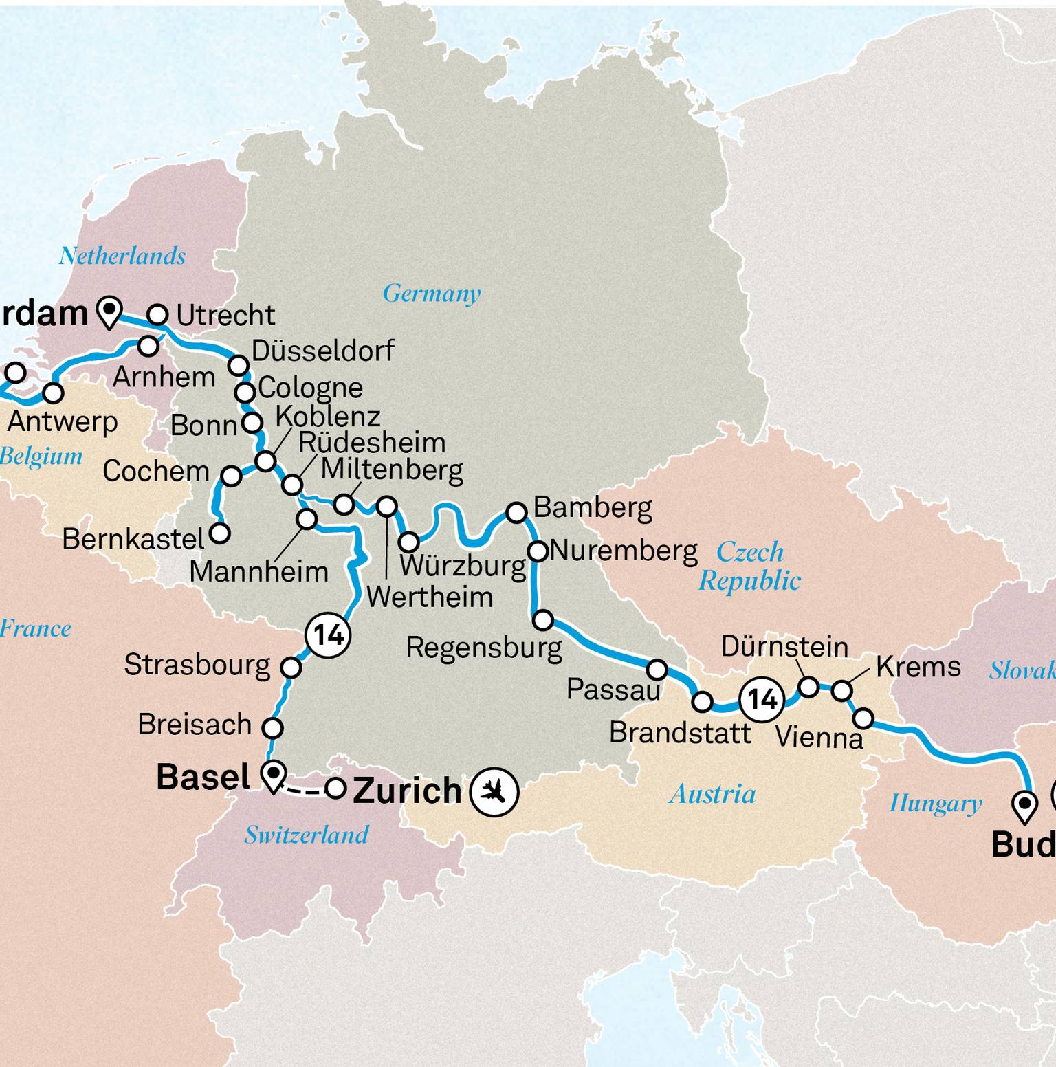 Duración 18 días Destinos Hungría, Eslovaquia, Austria, Alemania, Países Bajos, Francia Franja de edad Edades 12+ Idioma Solo: Inglés Operador Emerald Cruises Desde €12,209